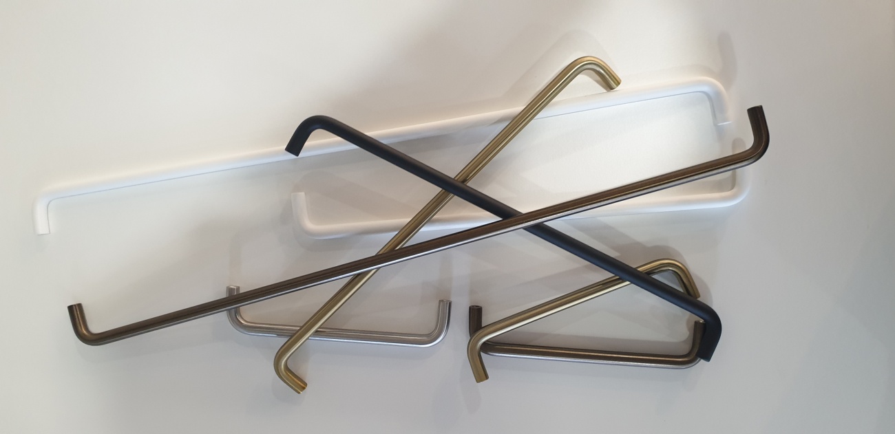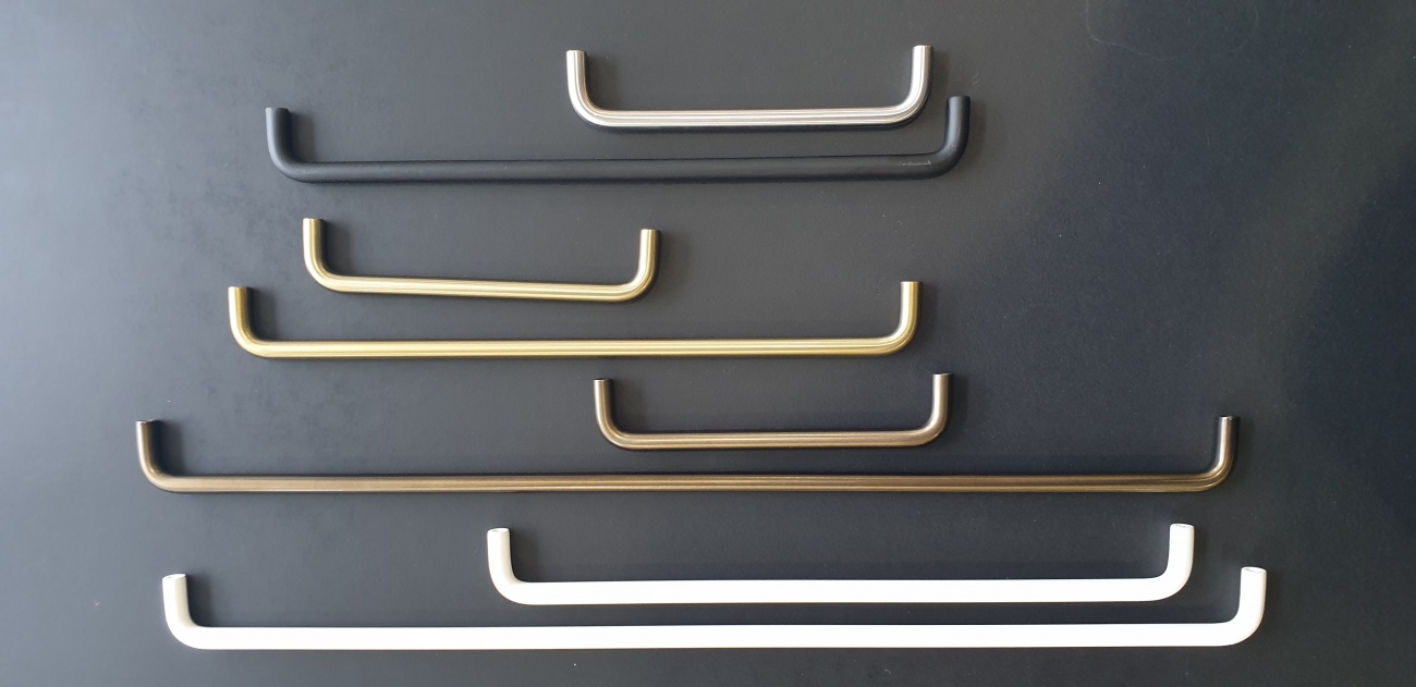 D handle manufactured in 10mm stainless steel wire. Finsihes include brushed SS, brass look, bronze look, black and white.